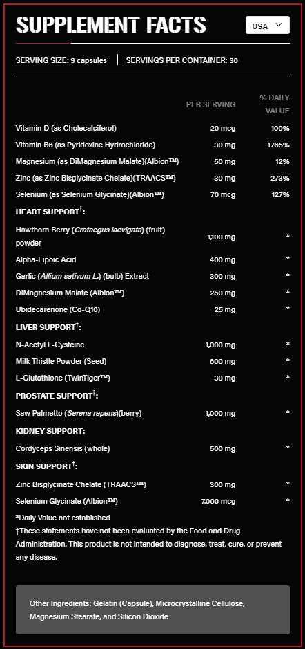 | Zinc (as Zinc Bisglycinate Chelate)(TRAACS™) | 30 mg |