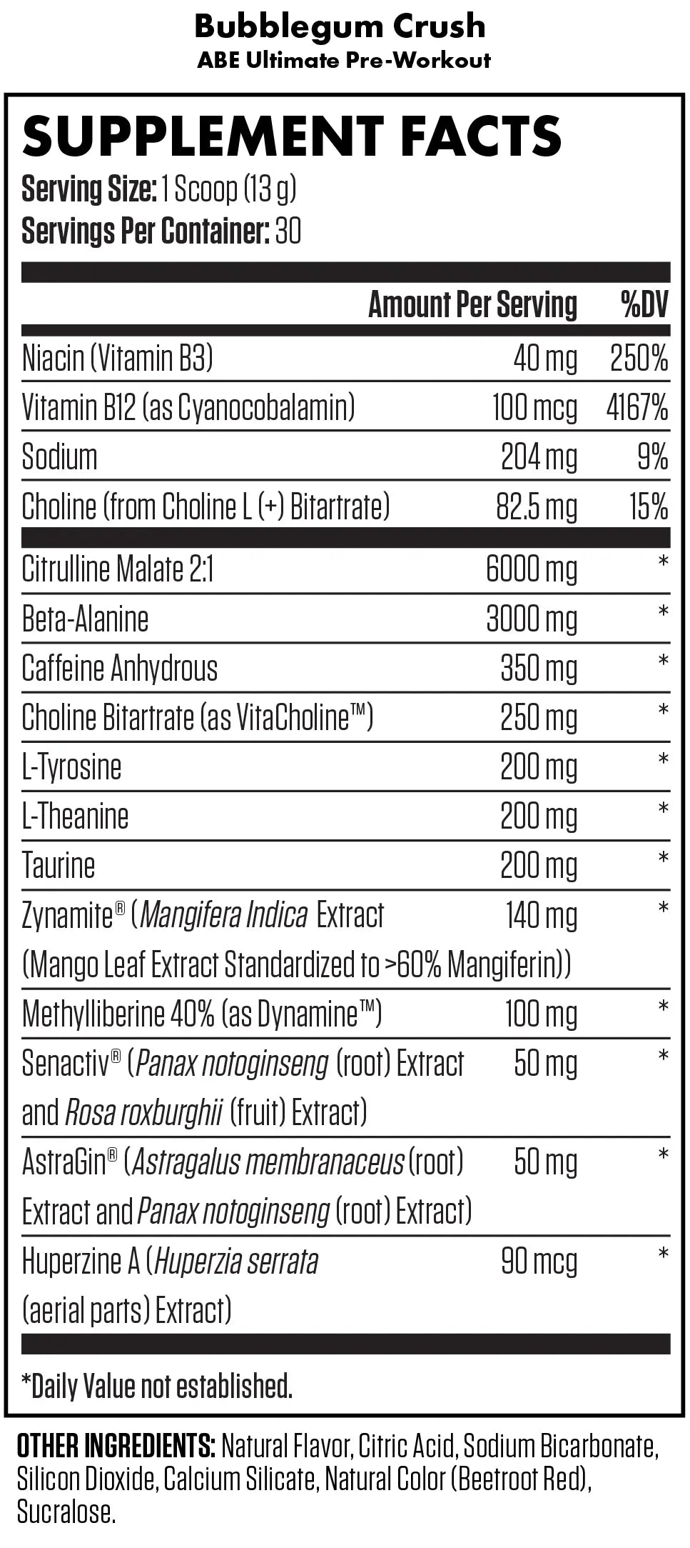 ABE Ultimate Pre-Workout contains 350mg of total caffeine per serving.