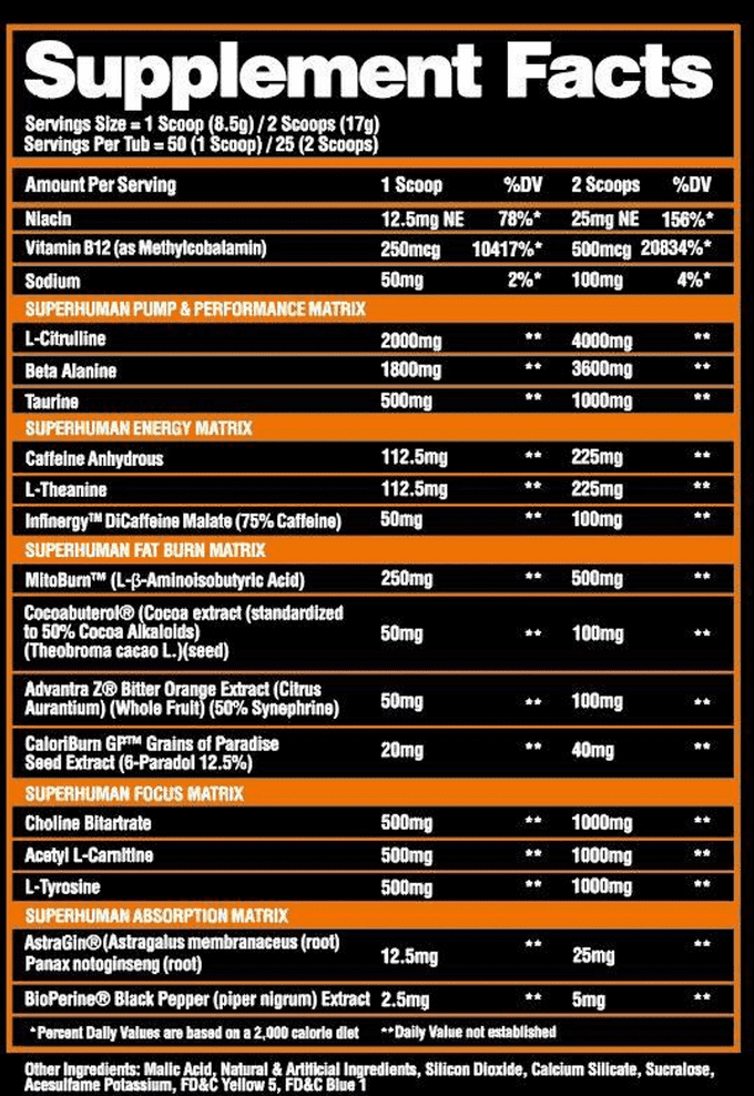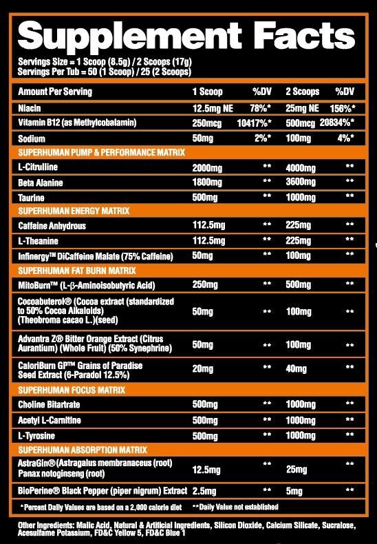 Listed as: SUPERHUMAN® BURN - 2 IN 1 FAT BURNING PRE WORKOUT