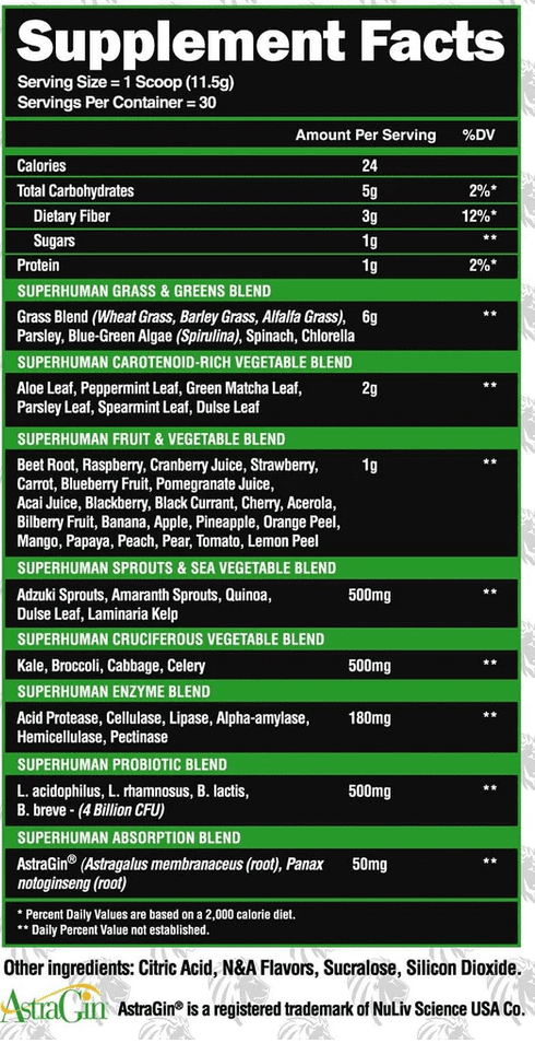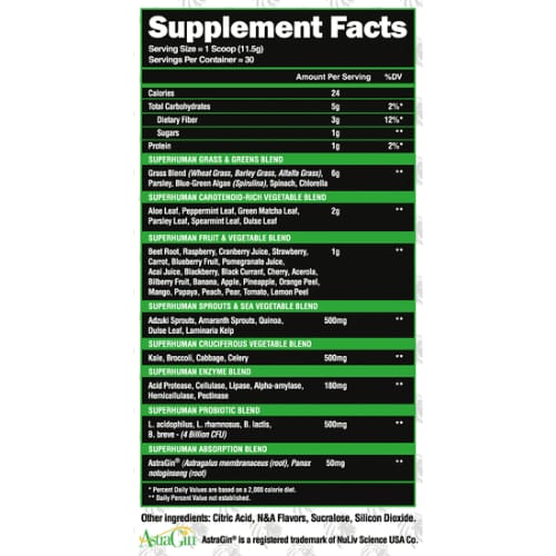 Listed as: SUPERHUMAN GREENS - POWERFUL SUPERFOOD BLEND 30 Servings