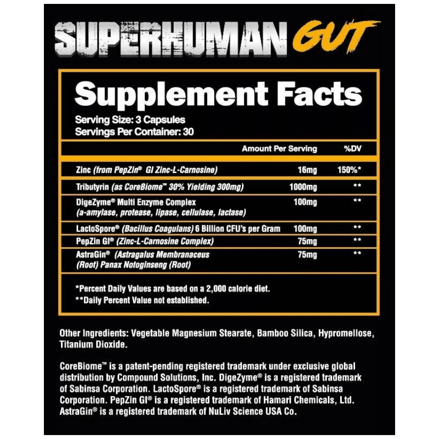 | Tributyrin (as CoreBiome⢠30% Yielding 300mg) | 1,000 mg |