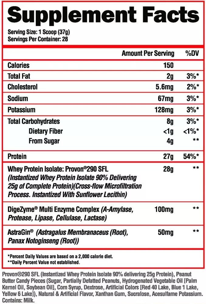 | Whey Protein Isolate: Provon®290 SFL (Instantized Whey Protein Isolate 90% Delivering 25g of Complete Protein)(Cross-flow Microfiltration Process. Instantized With Sunflower Lecithin) | 28 g |