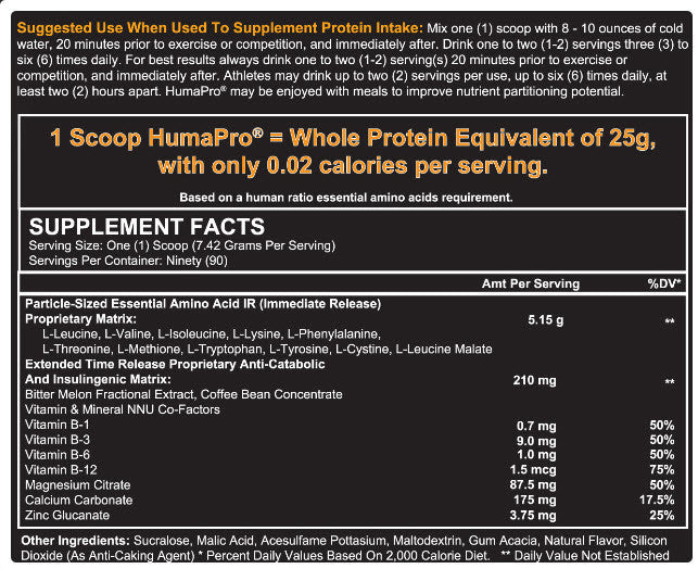 Humapro Amino Acid Matrix contains 0mg of total caffeine per serving.