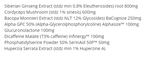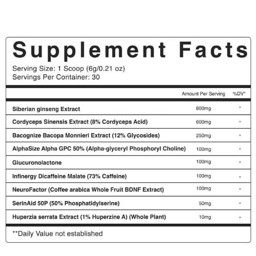 | AlphaSize Alpha GPC 50% (Alpha-glyceryl Phosphoryl Choline) | 100 mg |