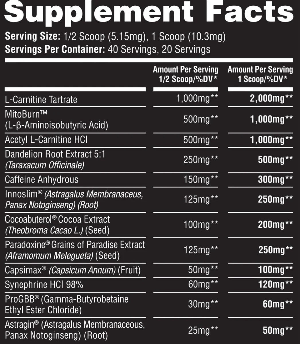 Black Tulip Thermogenic contains 150mg of total caffeine per serving.