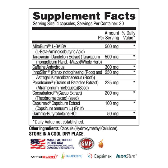 | MitoBurn L-BAIB A (L-Beta-Aminoisobutyric Acid) | 500 mg |