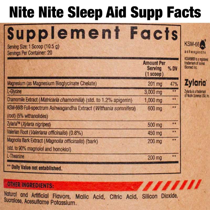 Arms Race Nite Nite Sleep Aid is classified as Non-Stimulant/Pump intensity. This pre-workout is suitable for most users.