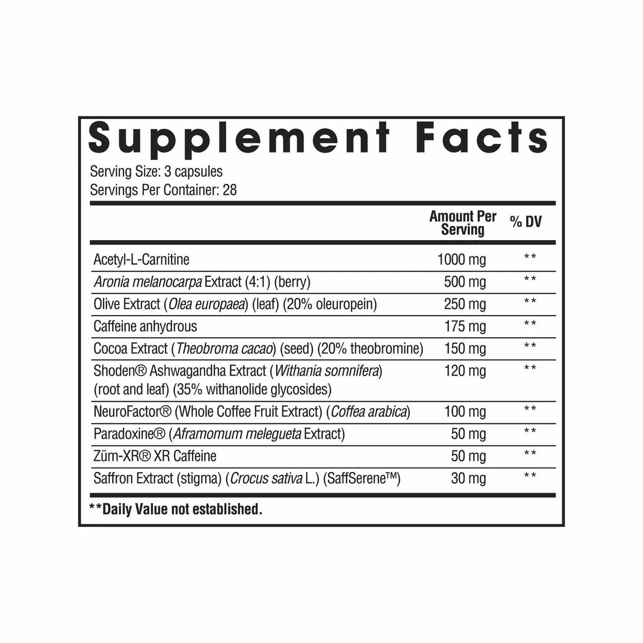 | NeuroFactor® (Whole Coffee Fruit Extract) (Coffea arabica) | 100 mg |