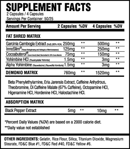 Listed as: DEMONIO - Fat Burner - High Stim