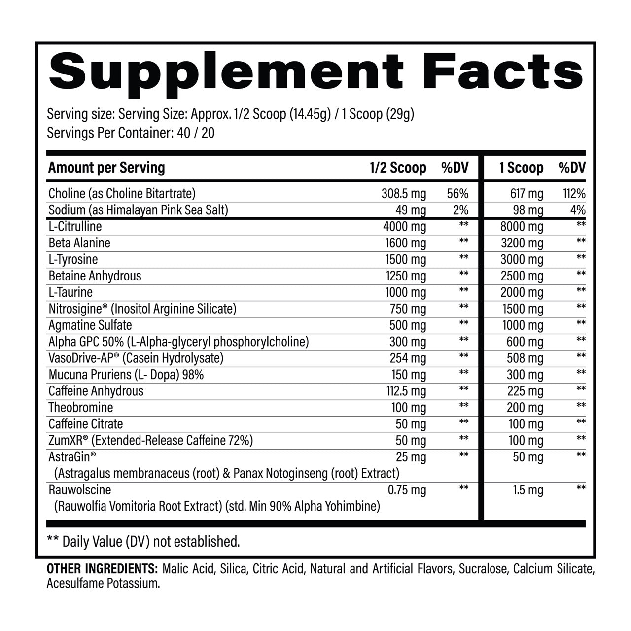 Deception Pre Workout contains 313mg of total caffeine per serving.
