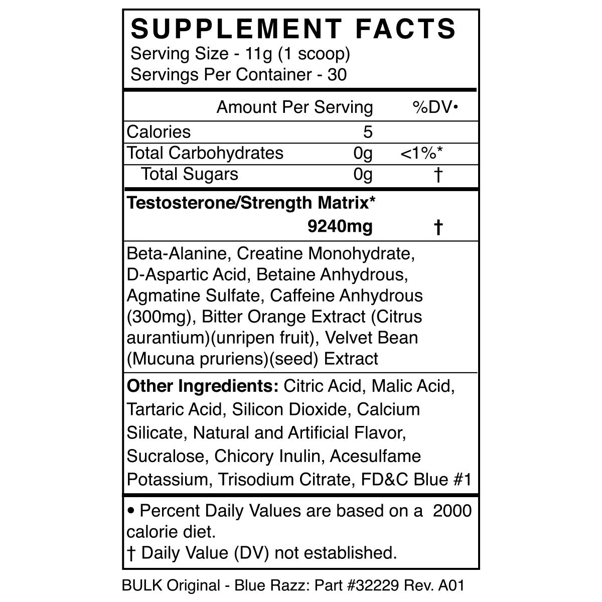 Black Market Bulk Pre Workout contains 300mg of total caffeine per serving.