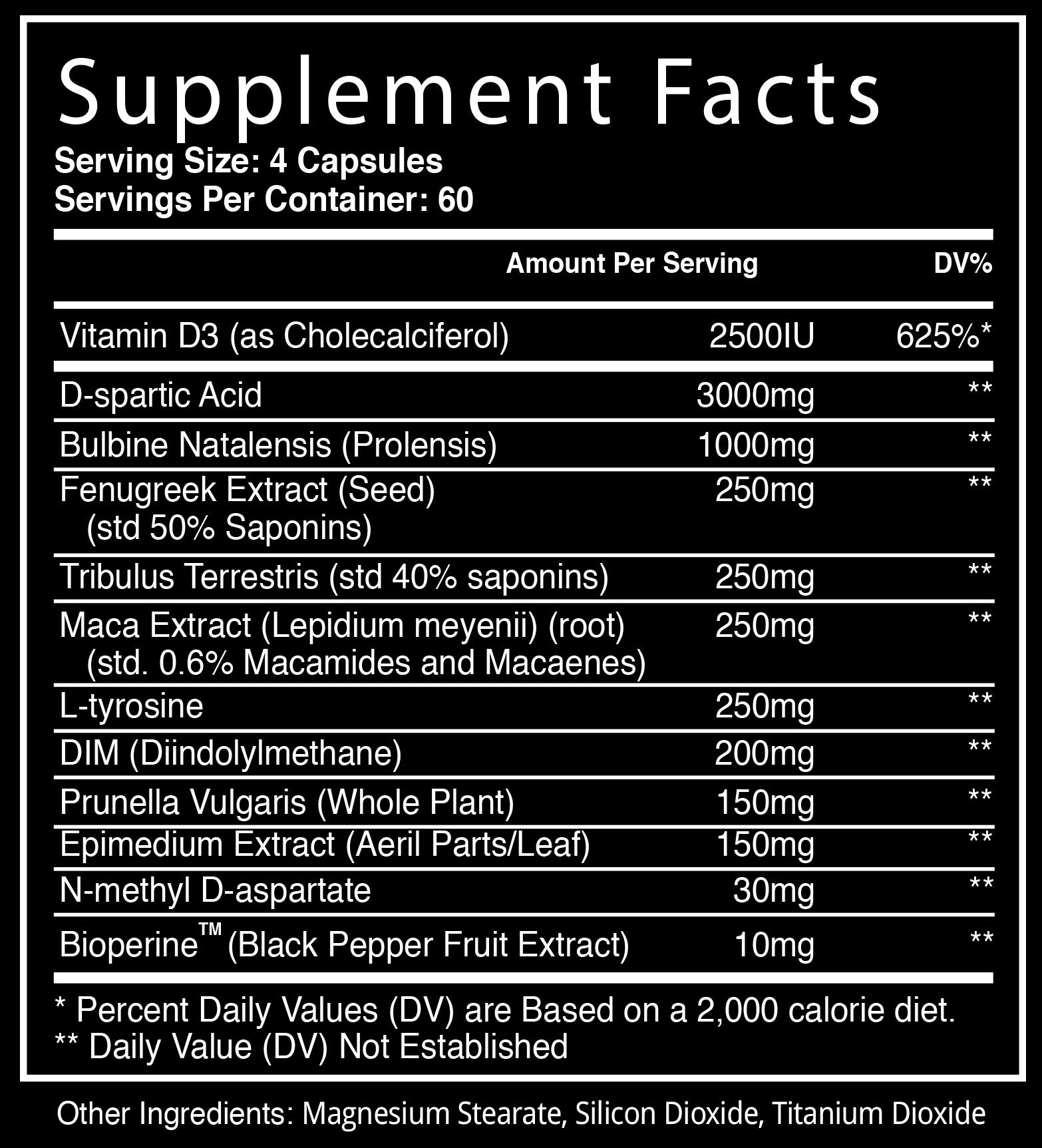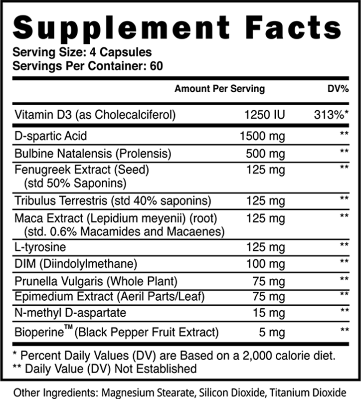 | Tribulus Terrestris (std 40% saponins) | 250 mg |