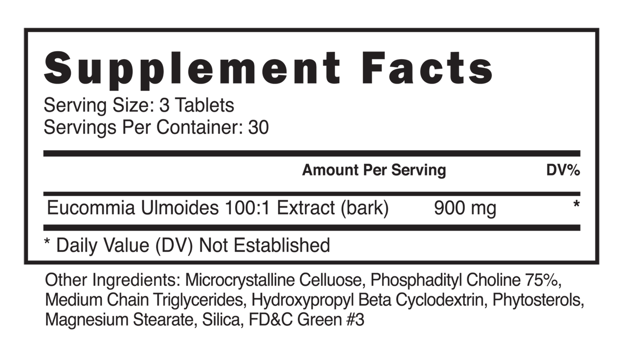 | Eucommia Ulmoides 100:1 Extract (bark) | 900 mg |