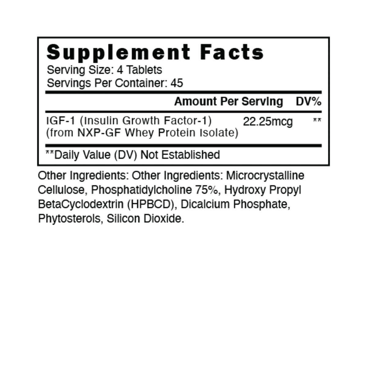 | IGF-1 (Insulin Growth Factor-1) (from NXP-GF Whey Protein Isolate) | 22.25 mcg |
