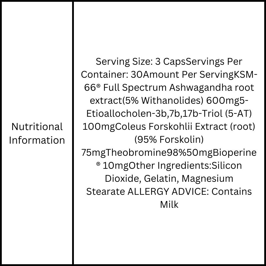 | KSM-66® Full Spectrum Ashwagandha root extract (5% Withanolides) | 600 mg |