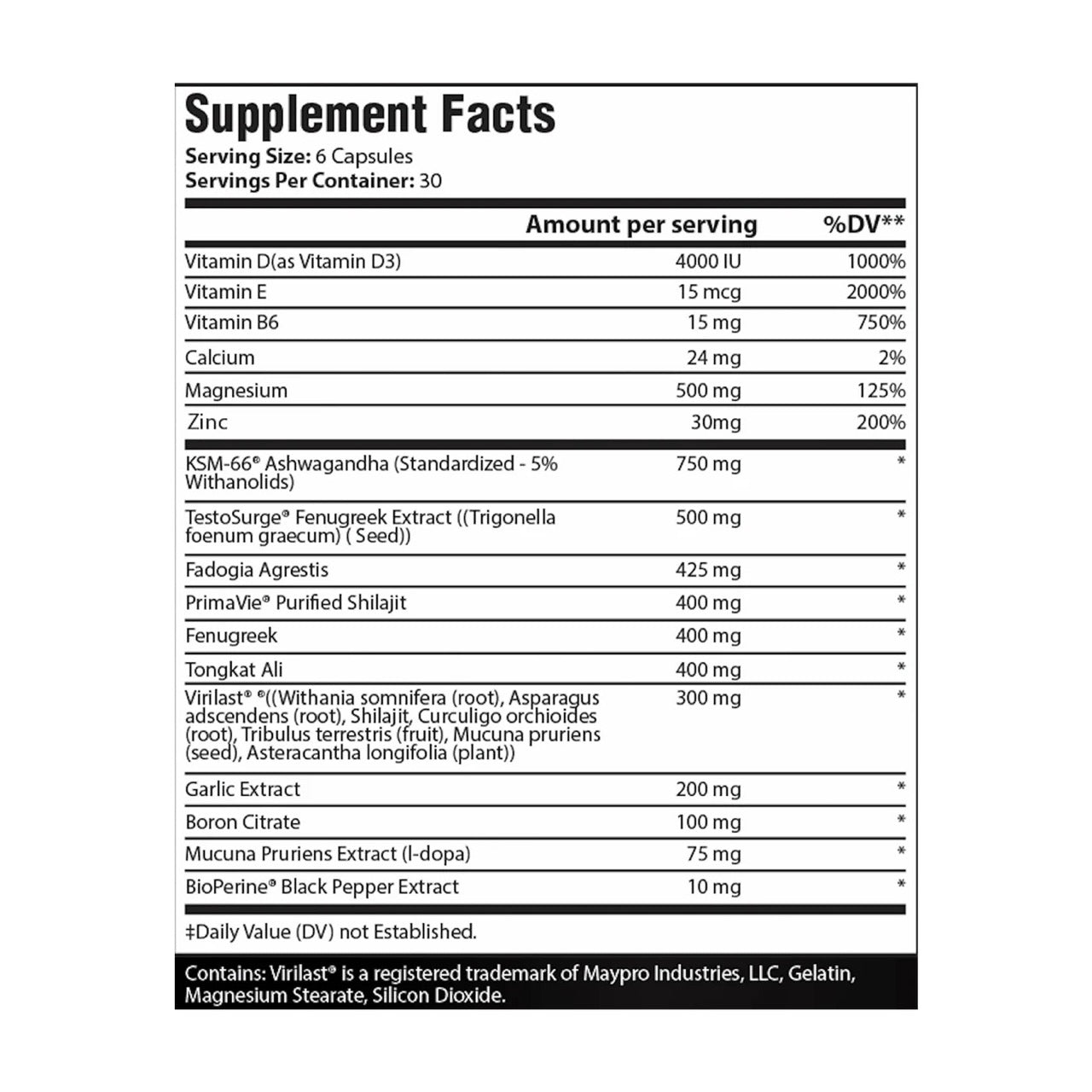 | Fadogia Agrestis | 425 mg |