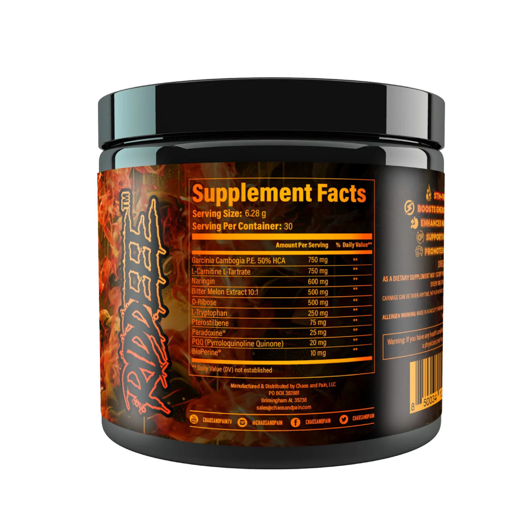 Listed as: CHAOS AND PAIN CANNIBAL CARNAGE (30 SERVINGS)