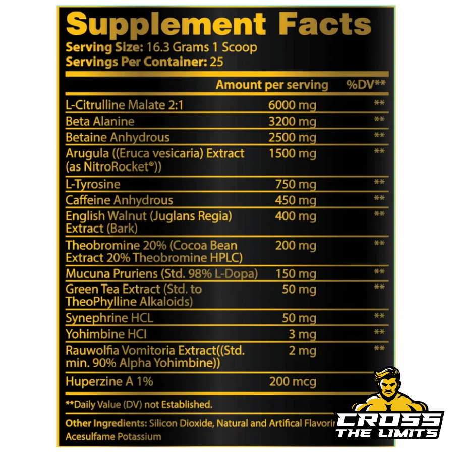 Maximum intensity warning! Contains exotic stimulants (DMHA, DMBA, DMAA) for experienced users only. Not for daily use – cycle with milder options throughout your week. Handle with respect.
