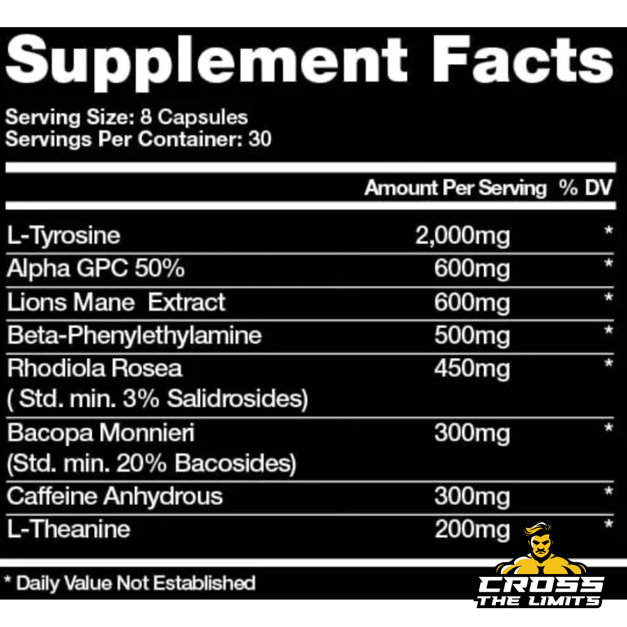 chaos and pain cannibal genius – extreme nootropic for focus iq & energy (240 capsules) contains 300mg of total caffeine per serving.