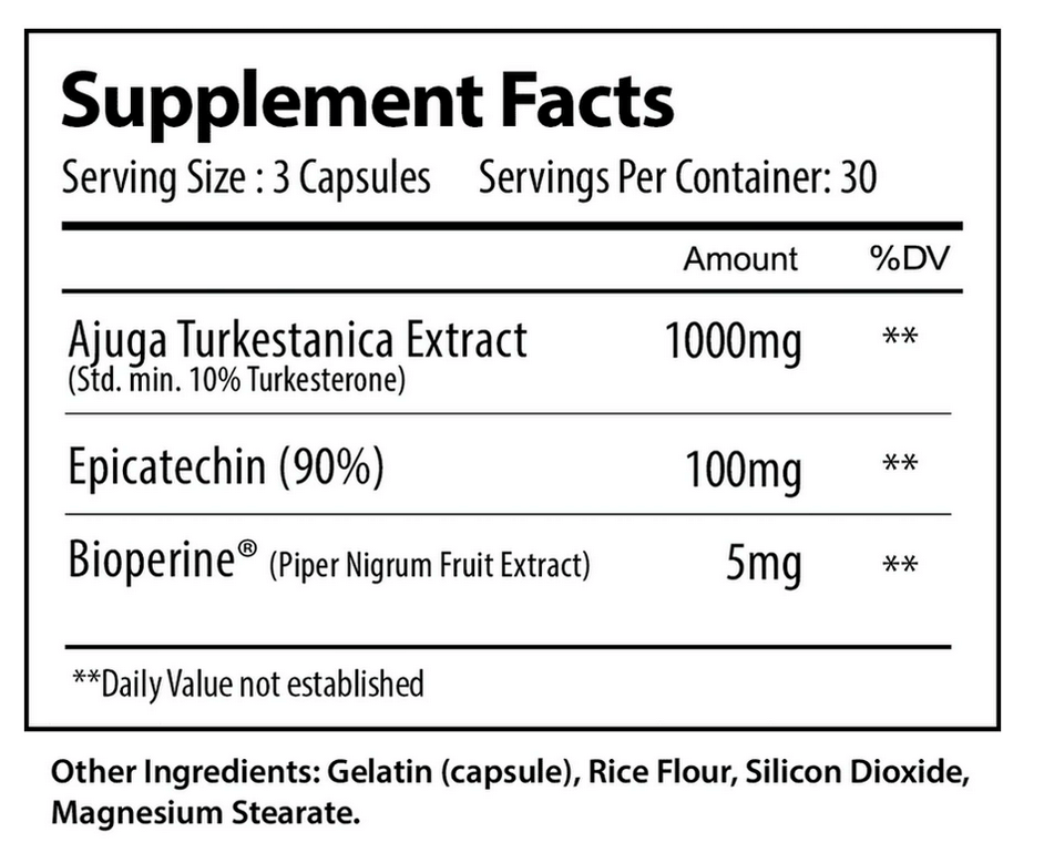 | Ajuga Turkestanica Extract (Std. min. 10% Turkesterone) | 1,000 mg |