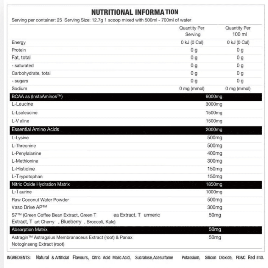 | Serving Size | 12.7g 1 scoop mixed with 500ml - 700ml of water |