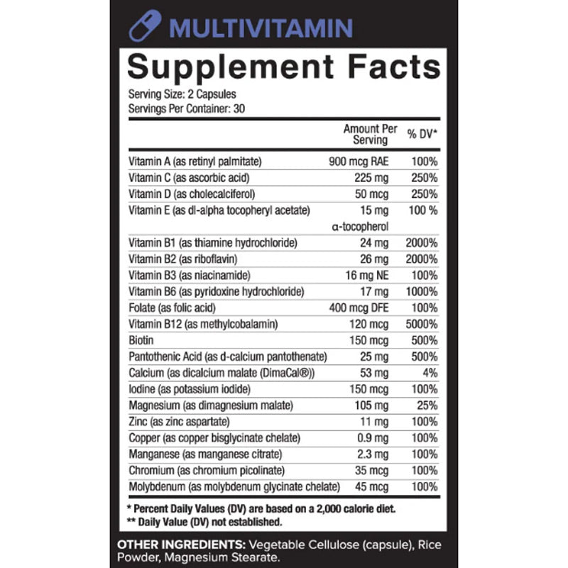 | Vitamin A (as retinyl palmitate) | 900 mcg RAE |