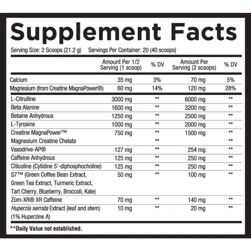 | Beta Alanine | 3,200 mg |