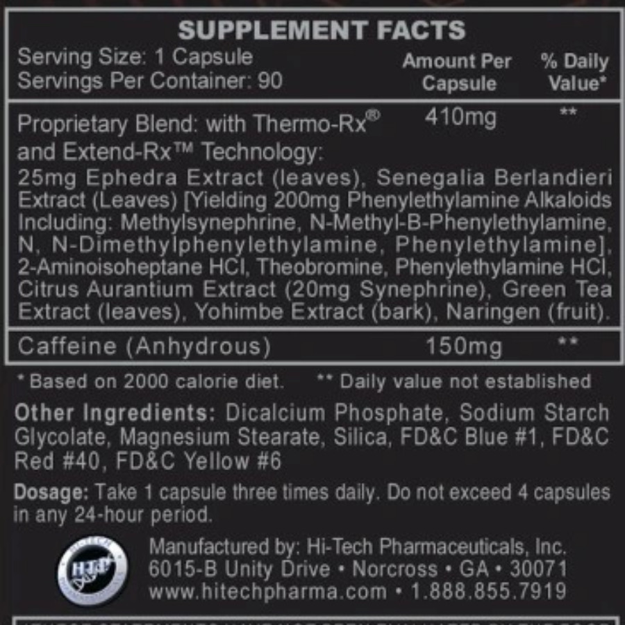 Hi-Tech BLACK WIDOW 90 CAPS - 2-amino contains 150mg of total caffeine per serving.