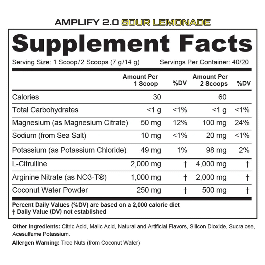 Amplify 2.0 Pump Pre Workout contains 0mg of total caffeine per serving.