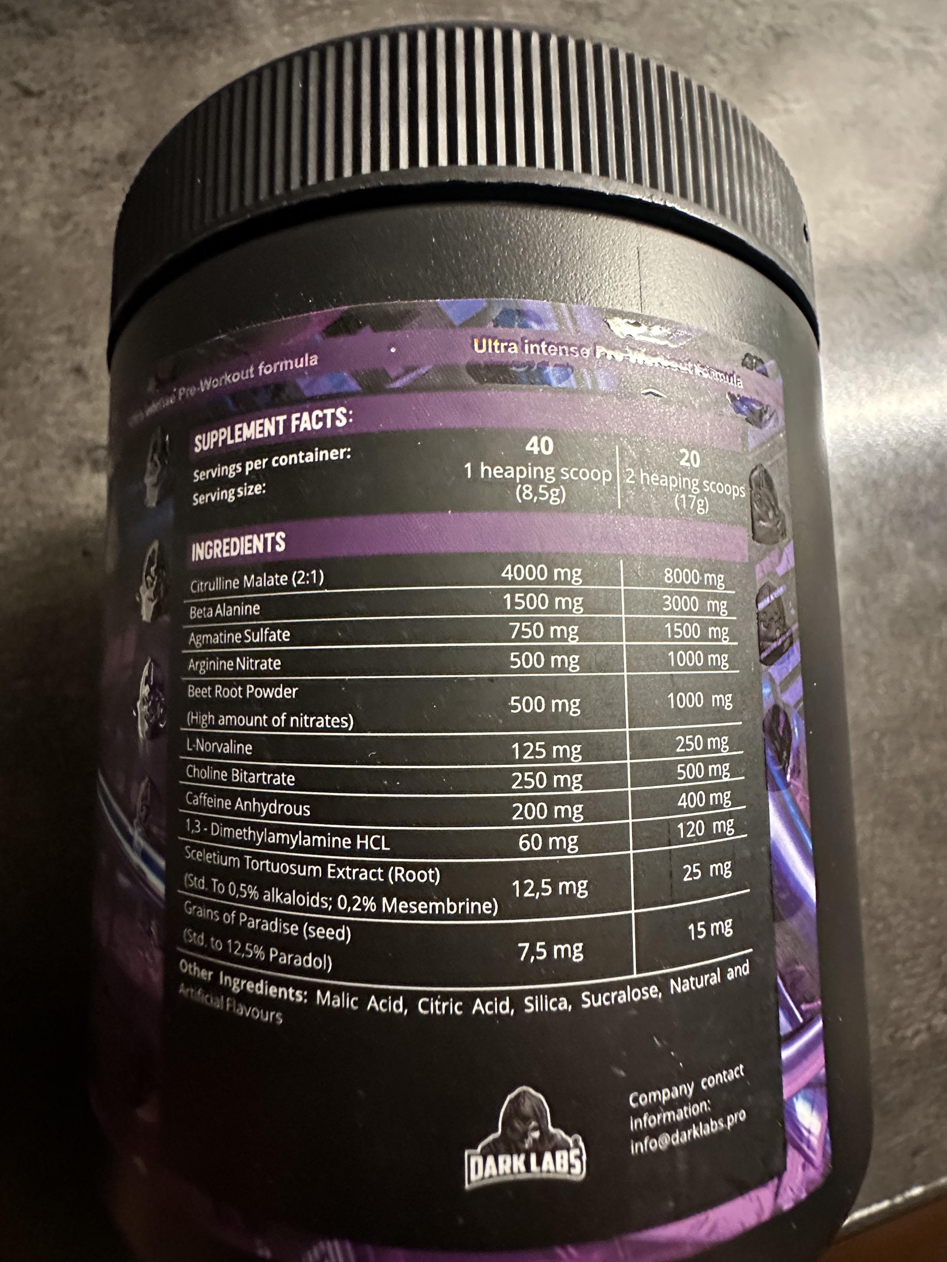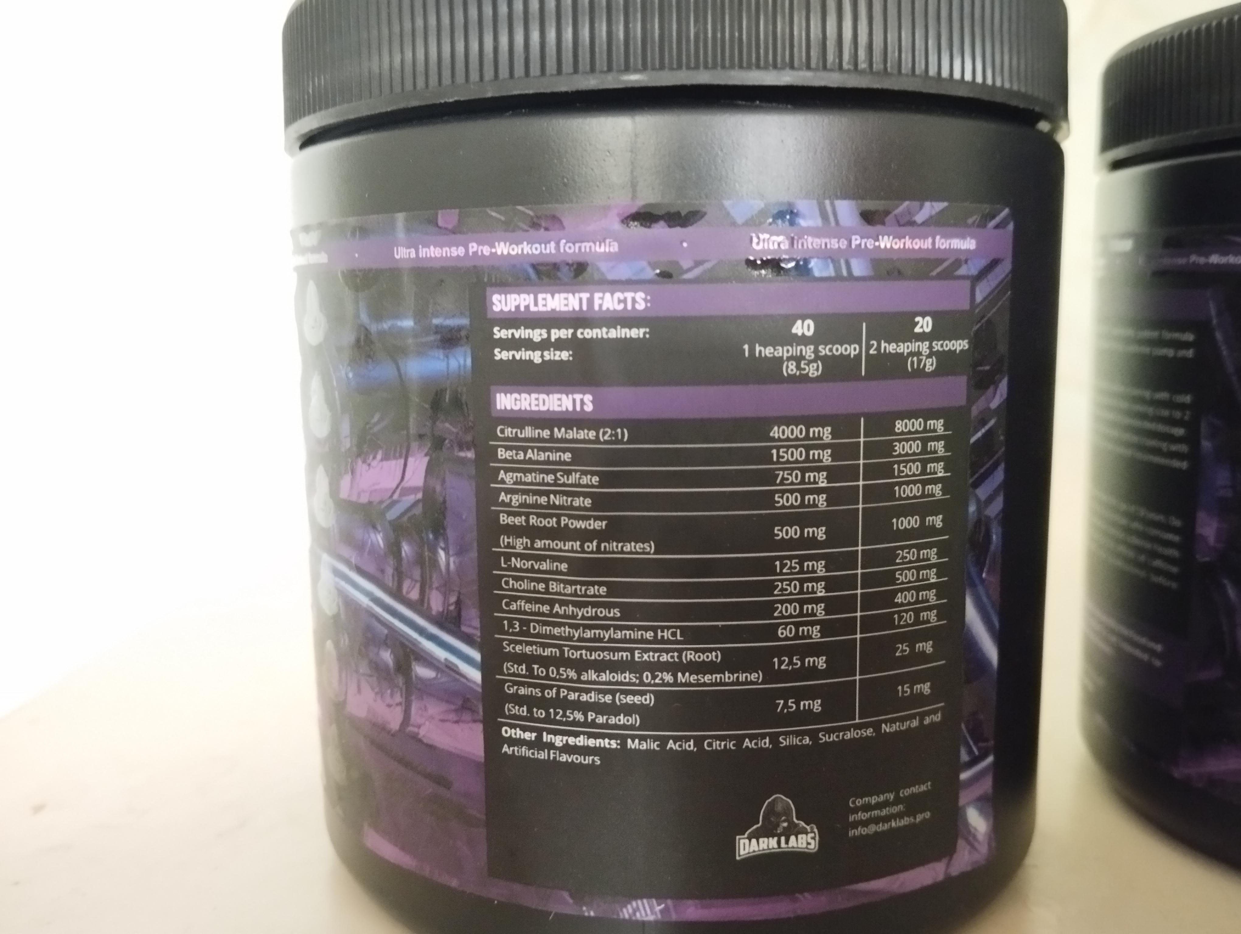 Dark Labs Crack Purple Pre Workout contains 500mg of total caffeine per serving.