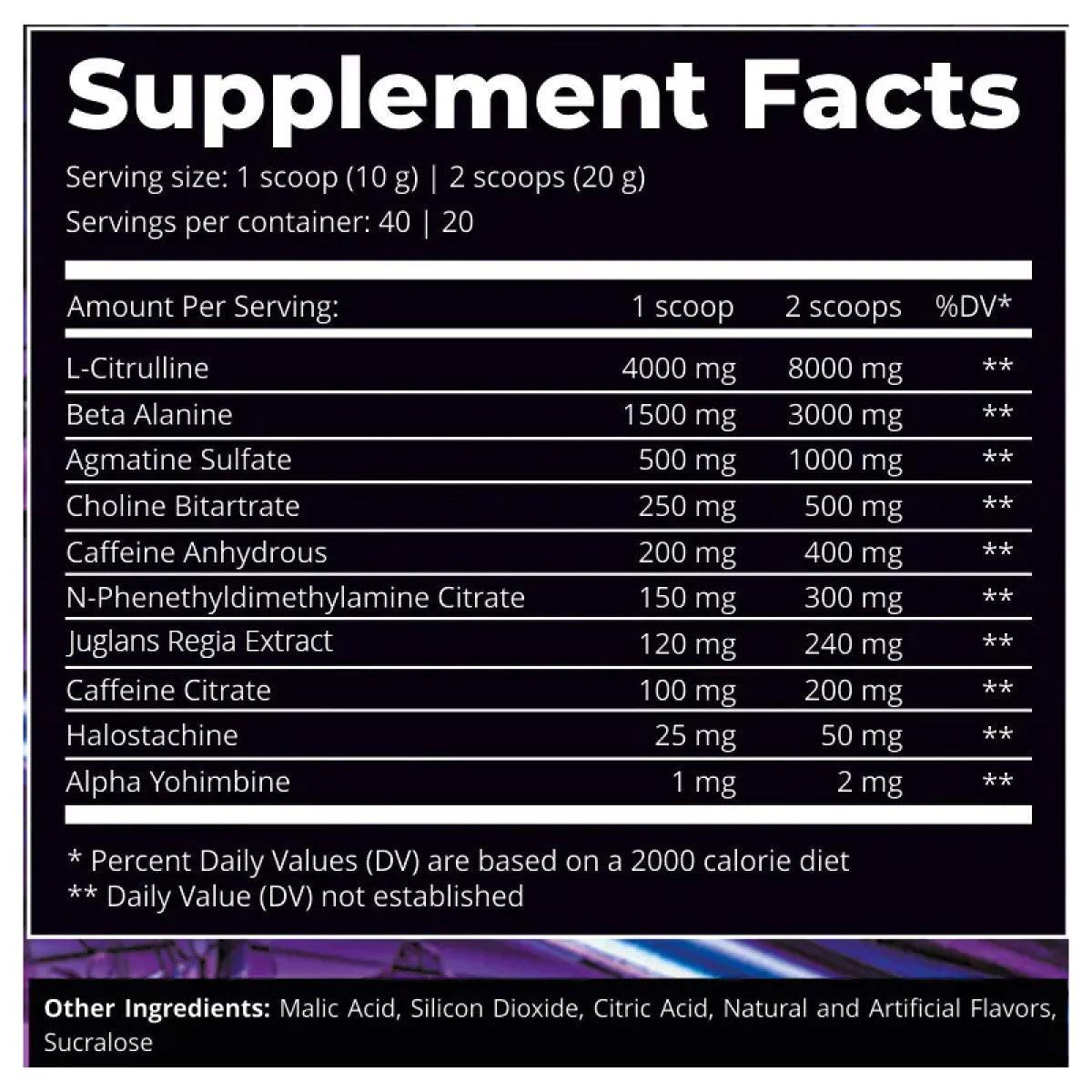 | Caffeine Anhydrous | 400 mg |