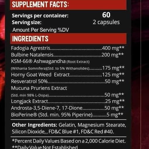 | Fadogia Agrestis | 400 mg |