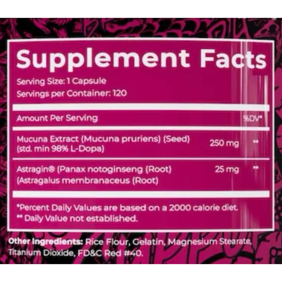 | Mucuna Extract (Mucuna pruriens) (Seed) (std. min 98% L-Dopa) | 250 mg |