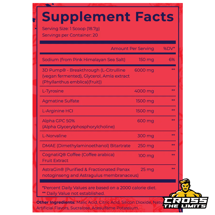 | 3D Pump® - Breakthrough (L-Citrulline (vegan fermented), Glycerol, Amla extract (Phyllanthus emblica)(fruit)) | 6,000 mg |