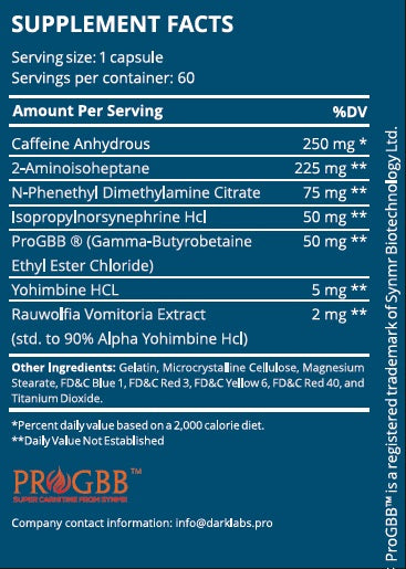 "Dark Labs RIPPER is a potent thermogenic fat burning formula. In typical Dark Labs fashion, the is accompanied by the signature Dark Labs 2-amino that provides a pronounced mood elevation that makes cardio a breeze."