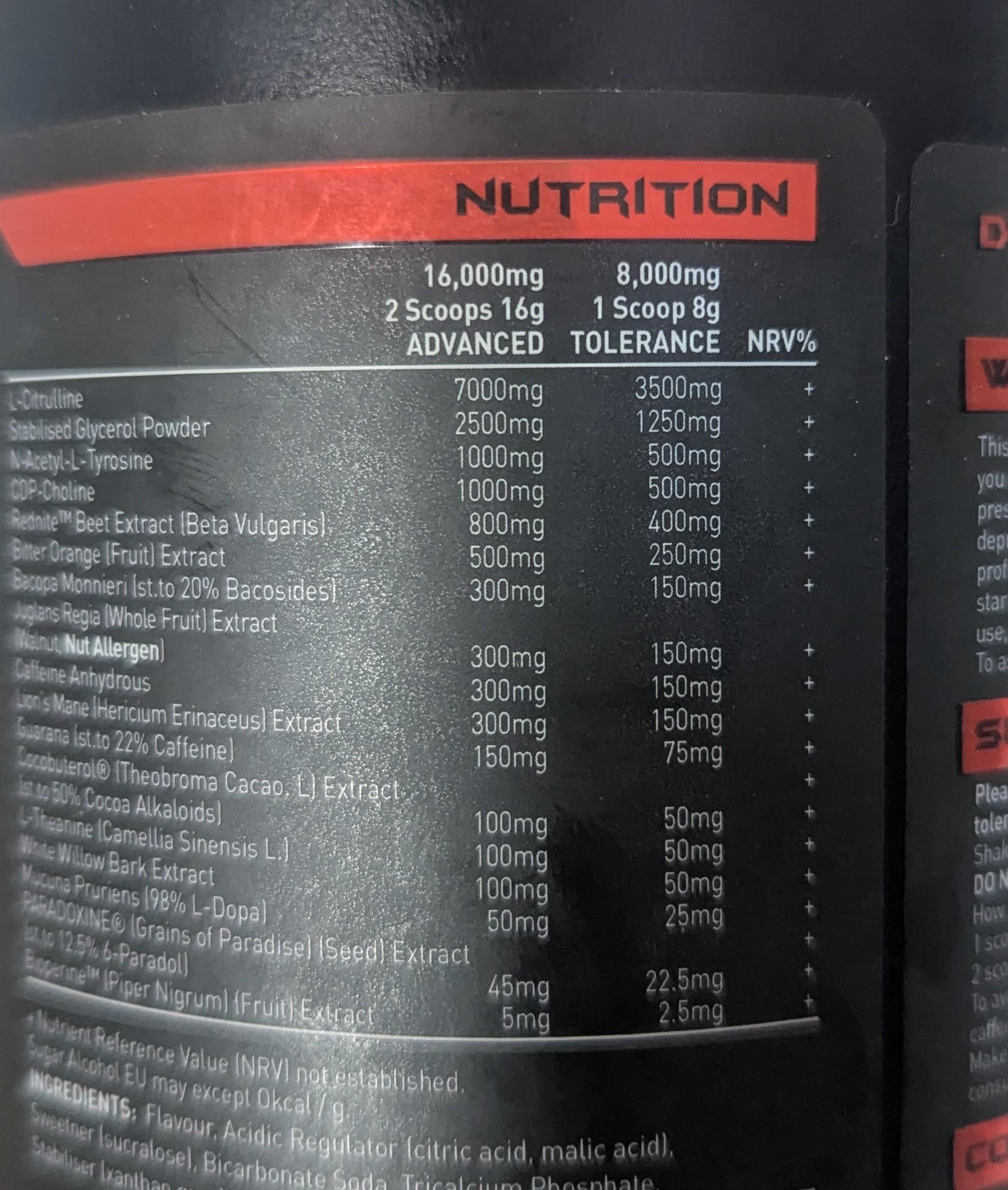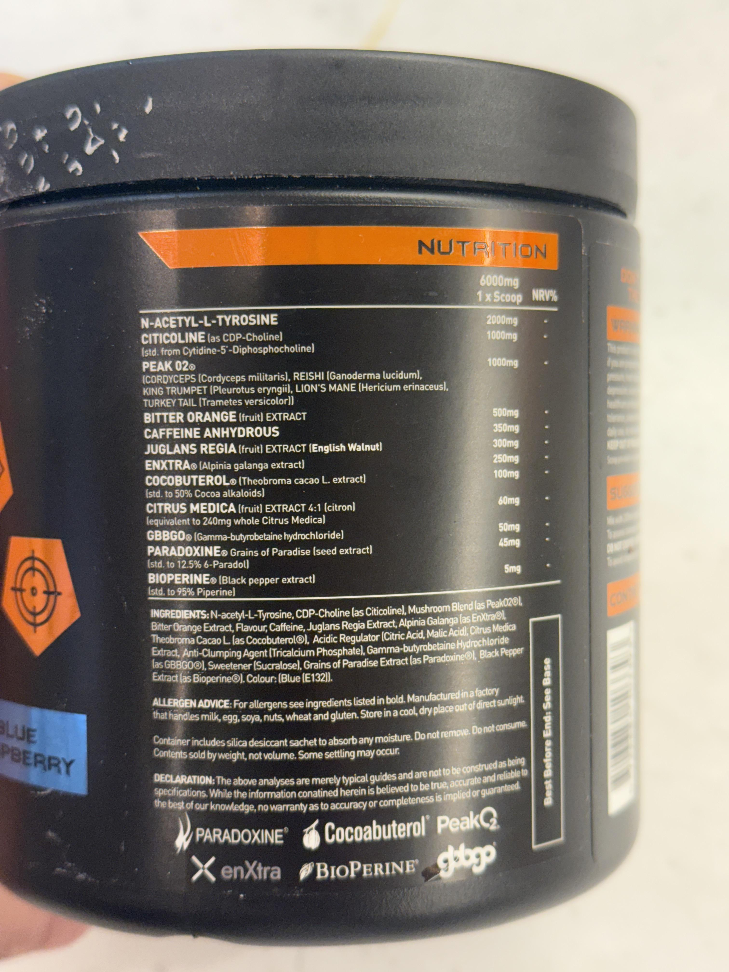 Darkside Ultra delivers intense energy and focus, with users reporting "energy off the motherfucking roof" and hitting "like an absolute train during the session." Contains a comprehensive blend of stimulants and nootropics, including Caffeine Anhydrous, Juglans Regia, N-Acetyl-L-Tyrosine, and Citicoline, alongside adaptogenic mushrooms like Lion's Mane and Cordyceps. Includes thermogenic ingredients such as GBBGO® and PARADOXINE® Grains of Paradise for potential fat burning and increased body temperature. Features BIOPERINE® (Black pepper extract) for enhanced absorption of ingredients.