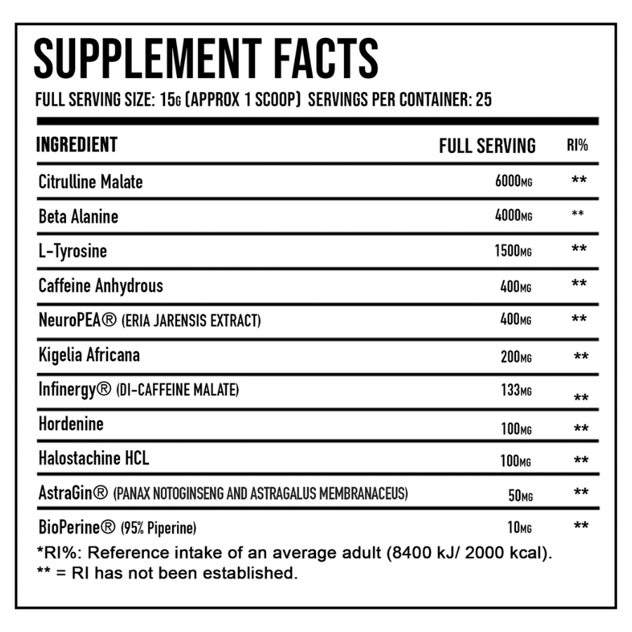 High-octane fuel with 400mg+ of caffeine and potential mild stimulants. Designed for seasoned athletes seeking serious performance enhancement without venturing into exotic territory.