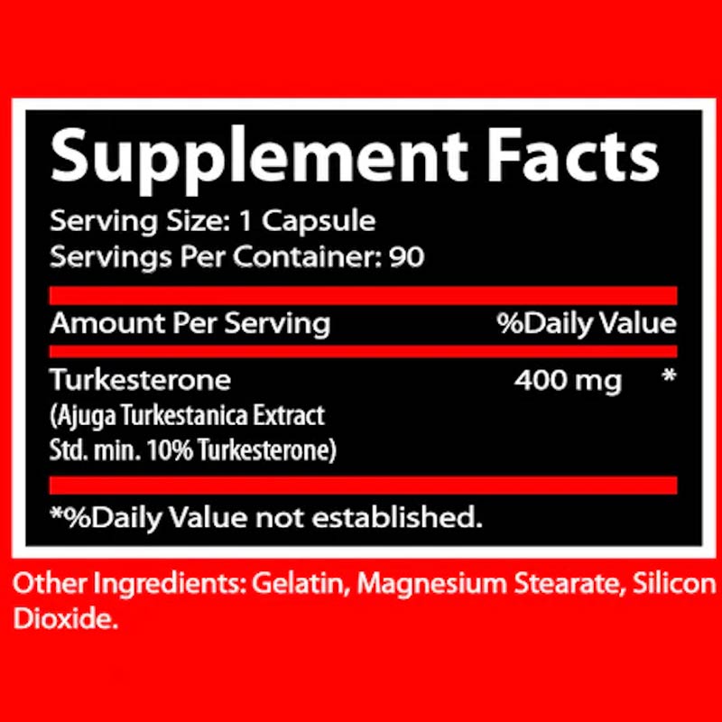 | Turkesterone (Ajuga Turkestanica Extract Std. min. 10% Turkesterone) | 400 mg |