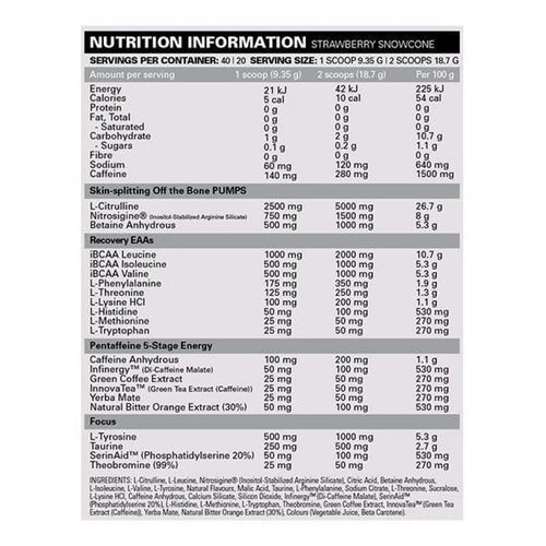 Pride delivers a comprehensive blend of ingredients supporting energy, pump, and focus. Users report a nice extended energy release. Contains a full spectrum of essential amino acids (EAAs) and branched-chain amino acids (BCAAs).