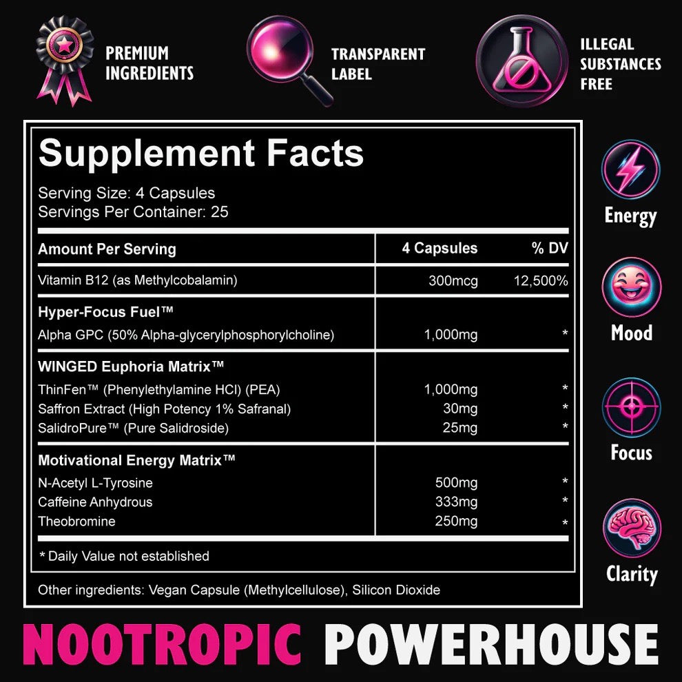 Winged Nootropic is classified as Intermediate intensity. This pre-workout is suitable for most users.