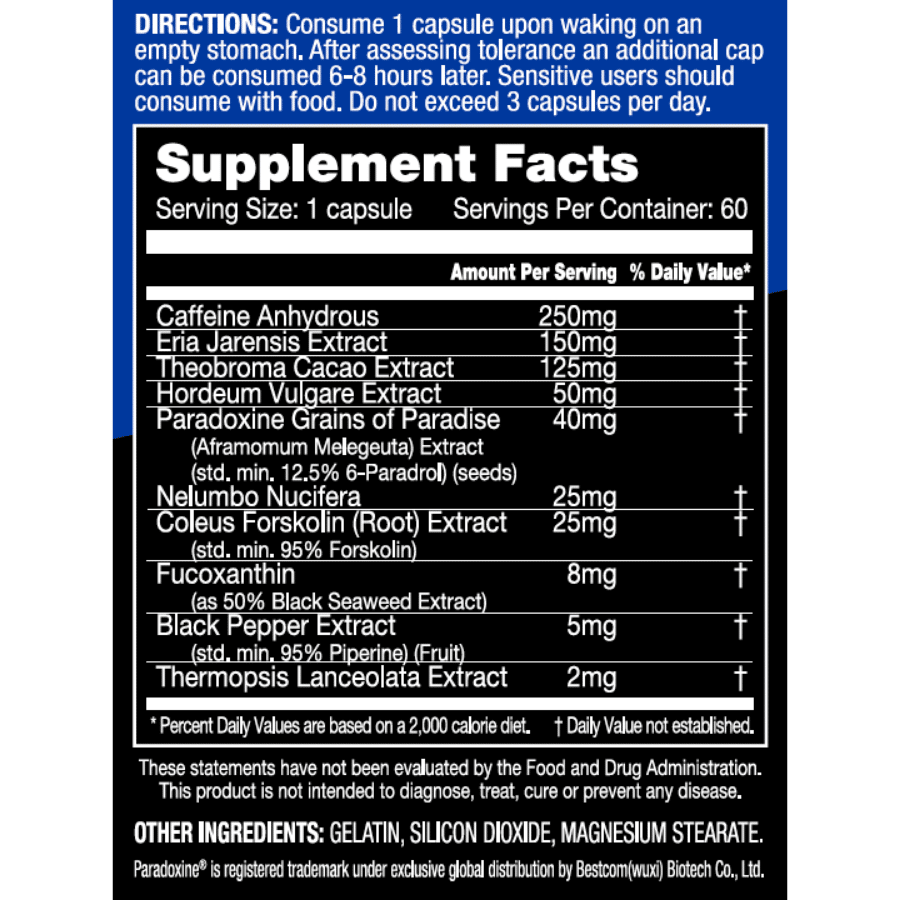 | Paradoxine Grains of Paradise (Aframomum Melegeuta) Extract (std. min. 12.5% 6-Paradrol) (seeds) | 40 mg |