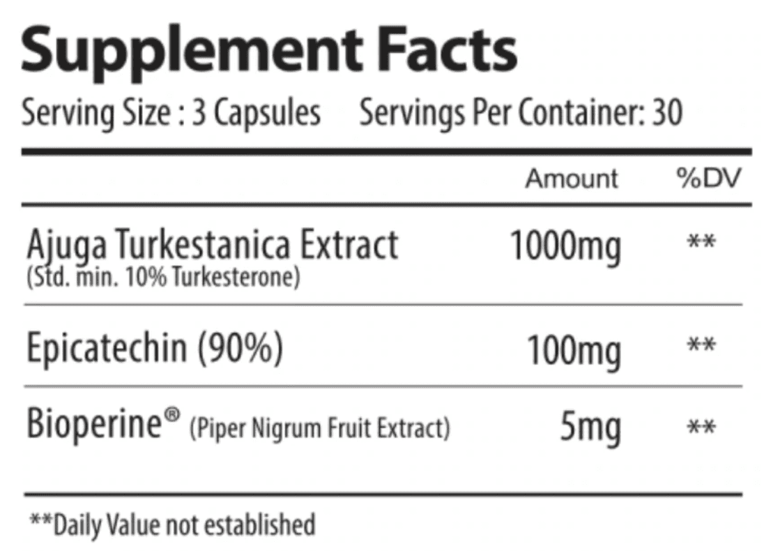 | Ajuga Turkestanica Extract (Std. min. 10% Turkesterone) | 1,000 mg |