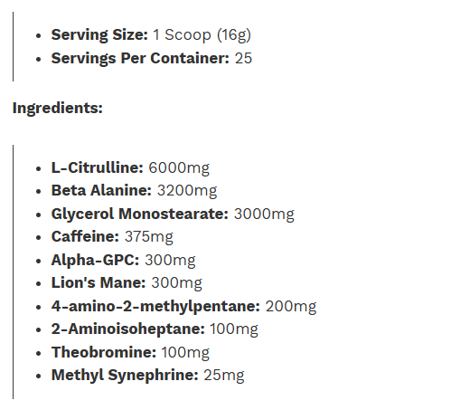 | Methyl Synephrine | 25 mg |