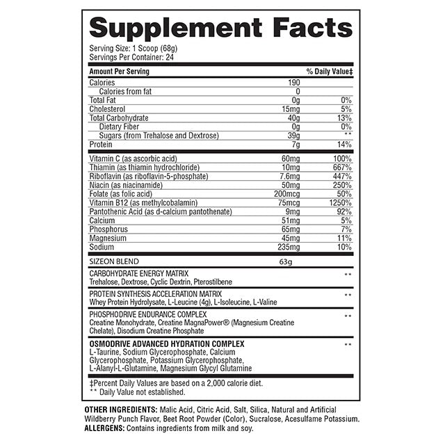 TrehaloseDextroseCyclic DextrinPterostilbeneWhey Protein HydrolysateL-IsoleucineL-ValineCreatine MonohydrateCreatine MagnaPower® (Magnesium Creatine Chelate)Disodium Creatine PhosphateL-TaurineSodium GlycerophosphateCalcium GlycerophosphatePotassium GlycerophosphateL-Alanyl-L-GlutamineMagnesium Glycyl Glutamine