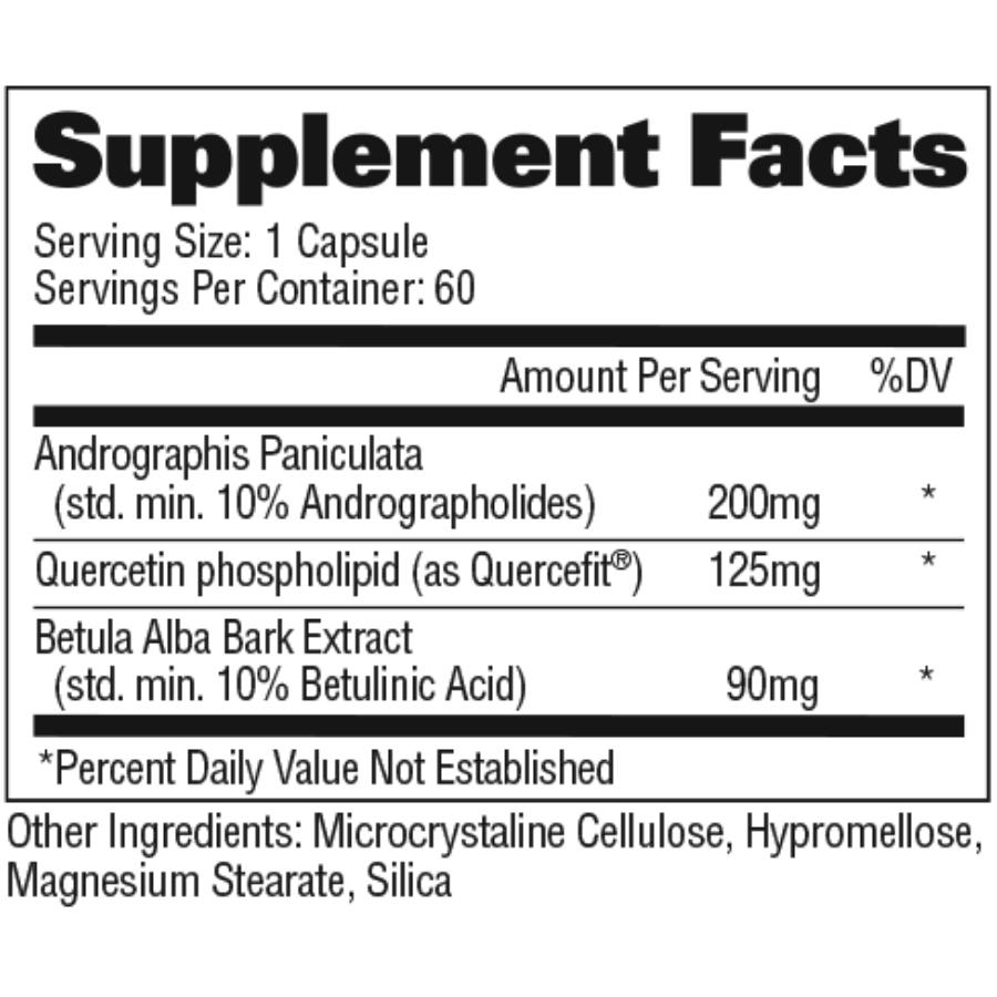 | Andrographis Paniculata (std. min. 10% Andrographolides) | 200 mg |