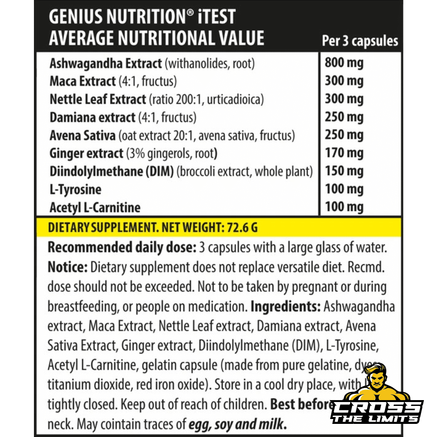 Genius Nutrition iTEST – 90 Capsules is available from retailers including Cross The Limits. Prices range from $21.84 GBP.
