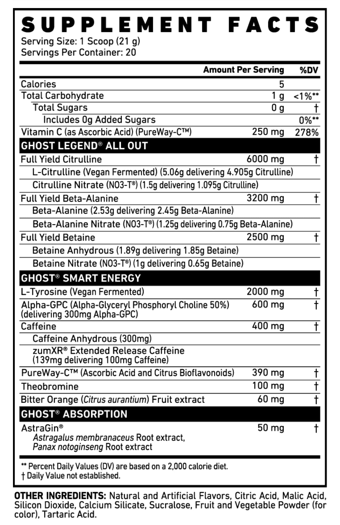 Ghost Legend® All Out is a higher stimulant and pump-focused pre-workout supplement. It is designed for advanced users seeking an elevated pre-workout experience.