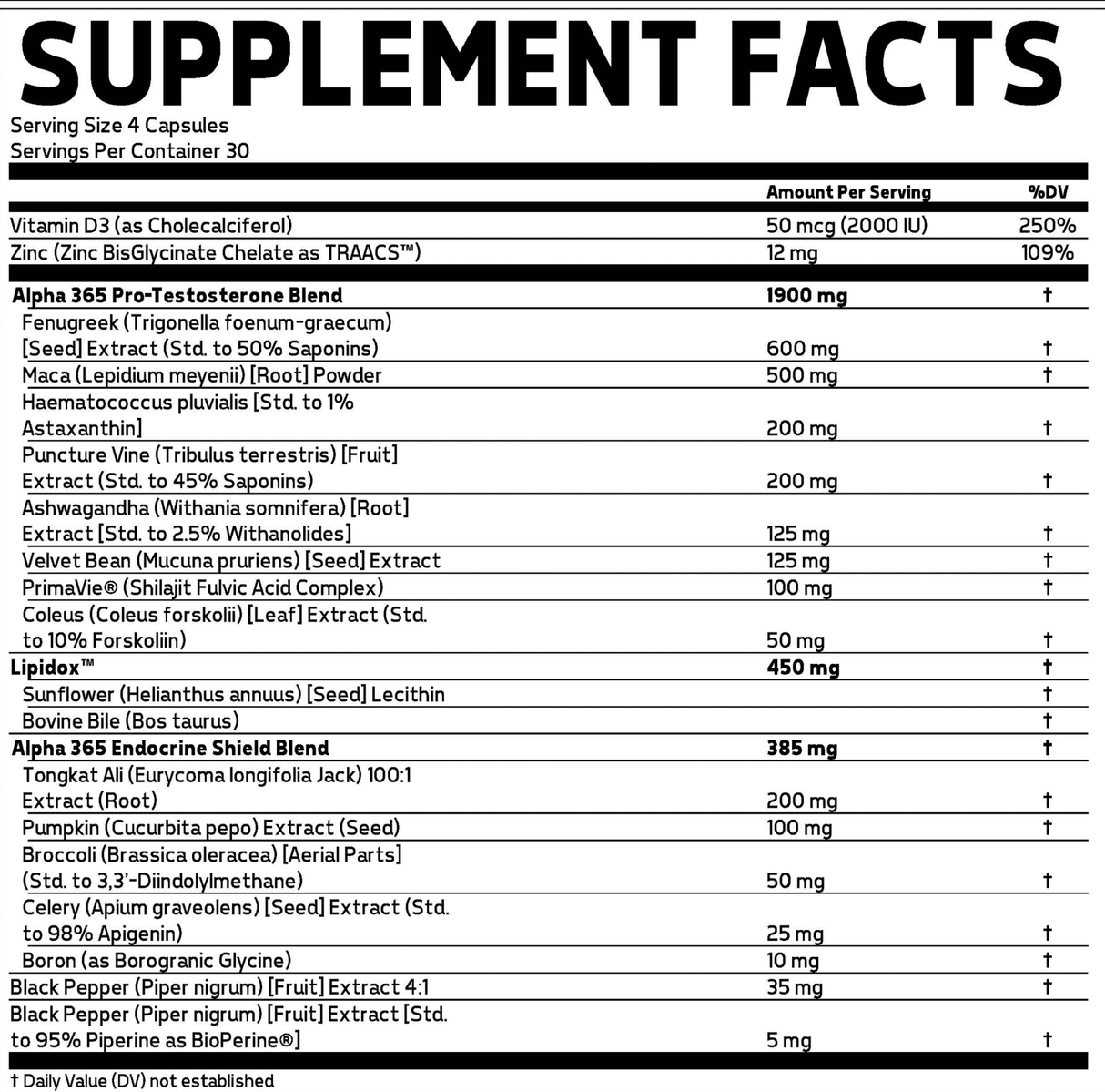 How much caffeine is in Alpha 365 Male Enhancement?