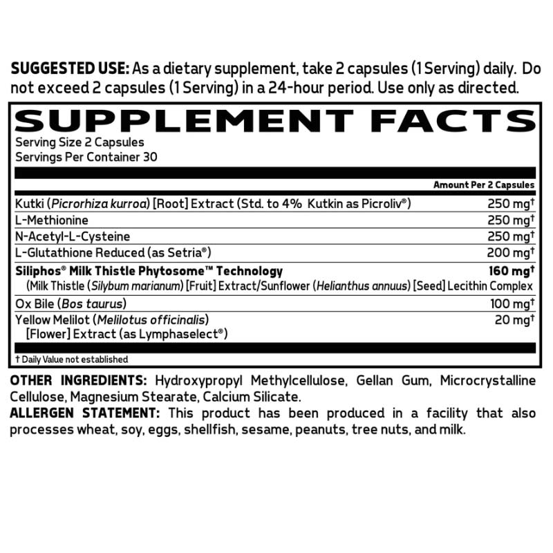 | Siliphos® Milk Thistle Phytosome™ Technology (Milk Thistle (Silybum marianum) [Fruit] Extract/Sunflower (Helianthus annuus) [Seed] Lecithin Complex) | 160 mg |