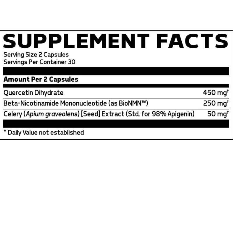 | Beta-Nicotinamide Mononucleotide (as BioNMNâ„¢) | 250 mg |